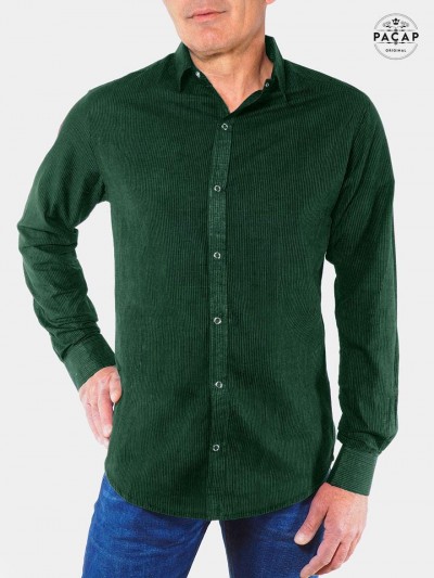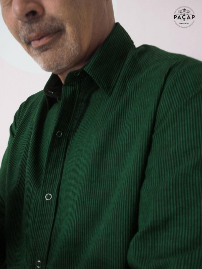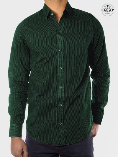 Chemise Classique Verte Bouteille Foncée Fines Rayures Noires – SOUN